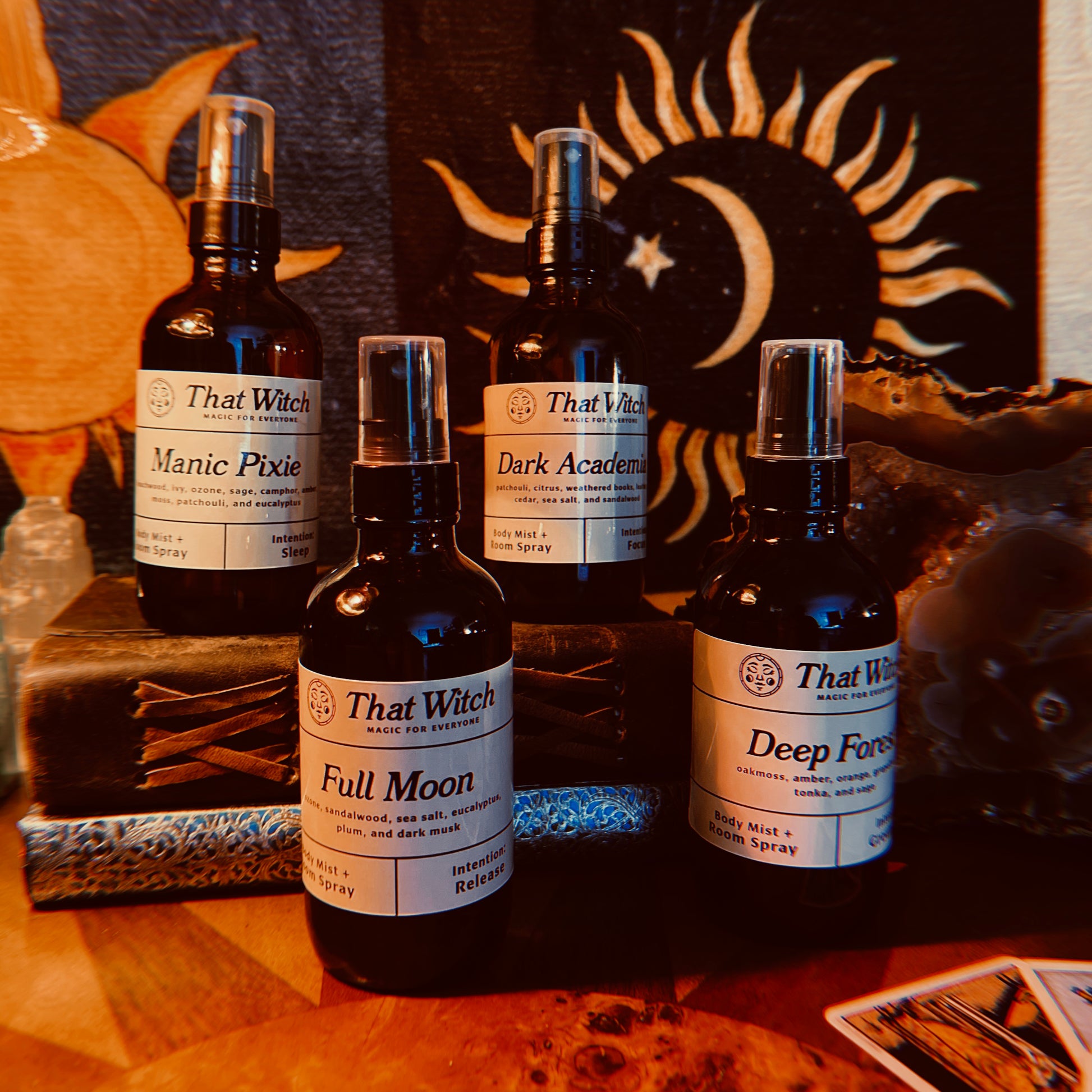our skin-safe sprays can be worn as a personal fragrance, used to freshen up your space, or enhance your rituals. super potent and imbued with specific intentions, one spritz will last for hours.