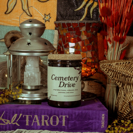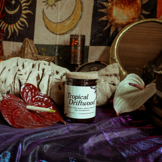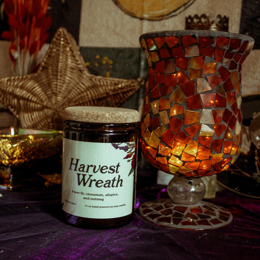 hand-poured soy wax. amber jar and cork lid. 100-hour burn.